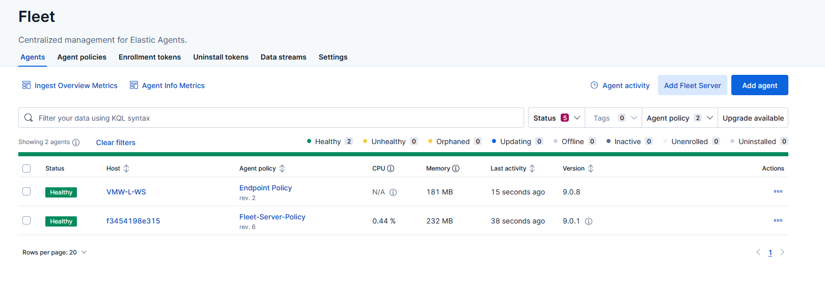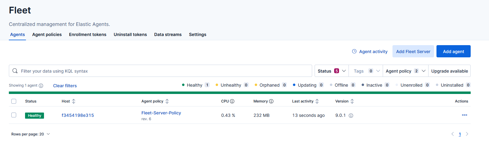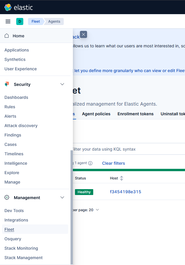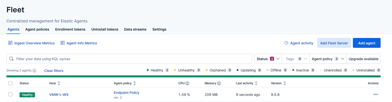The agent should appear as Healthy under Fleet Agents: