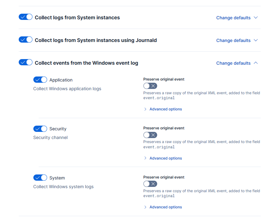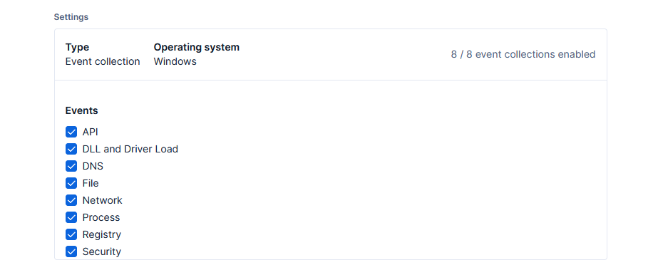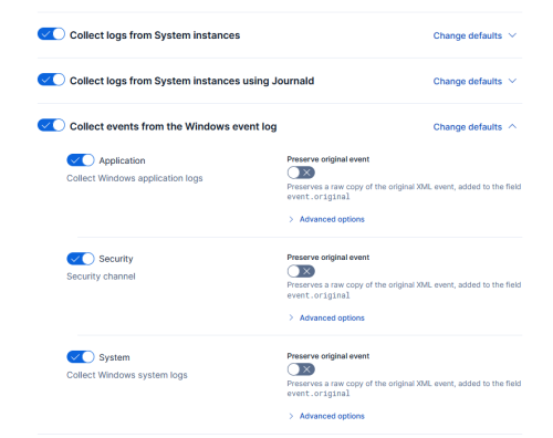 Back in the Endpoint Policy section, review the system-1 policy, and verify the collections are enabled for the Windows event log: