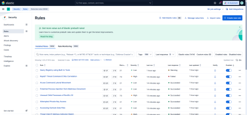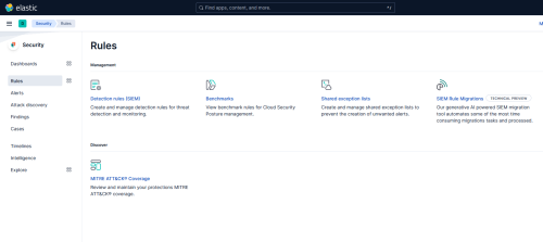 To confirm that the Elastic rules have loaded, navigate to Security > Rules and select Detection Rules (SIEM):