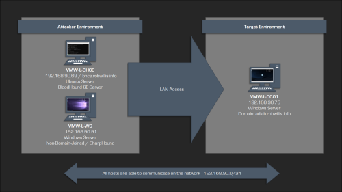 | VMW-L-WS | 8 | 16 GB | 50 GB | Collection Host (SharpHound) Non-domain-joined |