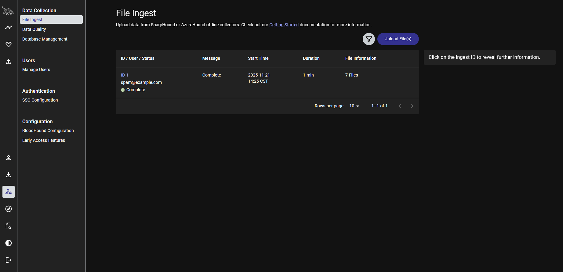 Upload the zip in the BloodHound web interface under Administration > File Ingest: